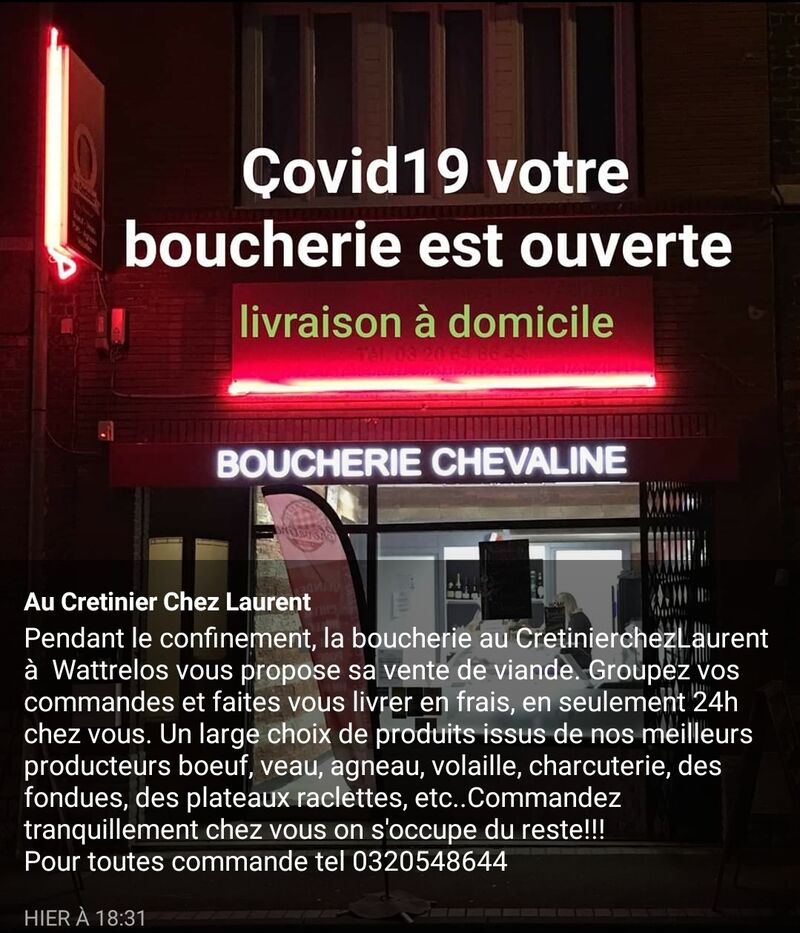 Notre boucherie dispose d’un accès facile. C’est particulièrement important pour les familles avec des poussettes ou les personnes à mobilité réduite. Nous serions heureux de valider votre réservation. Nous vous assurons un bon moment et une ambiance agréable lors de votre visite. Il vous suffit de nous contacter par e-mail à boucheriechevaline@orange.fr ou tél. en appelant le +33320548644. Nous acceptons les virements bancaires, les chèques, les paiements dématérialisés, la MasterCard, les tickets repas, la VISA, le Ticket Restaurant® et les cartes de débit comme moyen de paiement. Il est en outre possible de payer en espèces. Bien entendu, vous pouvez également vous faire livrer vos plats, ou les commander puis les emporter. Nous proposons en plus un service traiteur – n’hésitez pas à nous demander ! Notre établissement est également disponible pour des événements privés. Contactez-nous et nous vous trouverons une date convenable. Nous avons également la possibilité d’organiser des événements majeurs tels que des fêtes de mariage – n’hésitez pas à nous contacter ! Nous sommes ouverts tous les jours sauf le lundi.